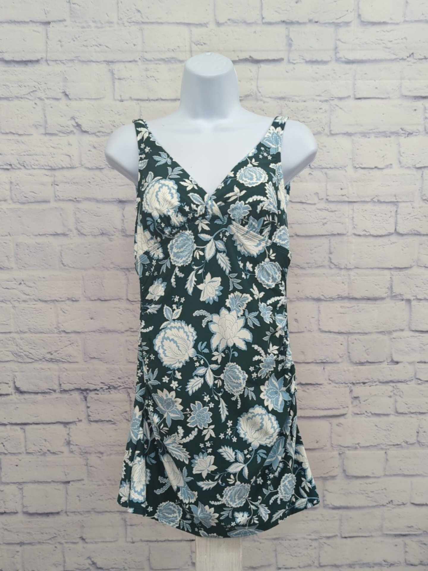 8R GREEN BLOSSOM A602924 Jantzen V-Neck Wrap Front Printed Swim Dress