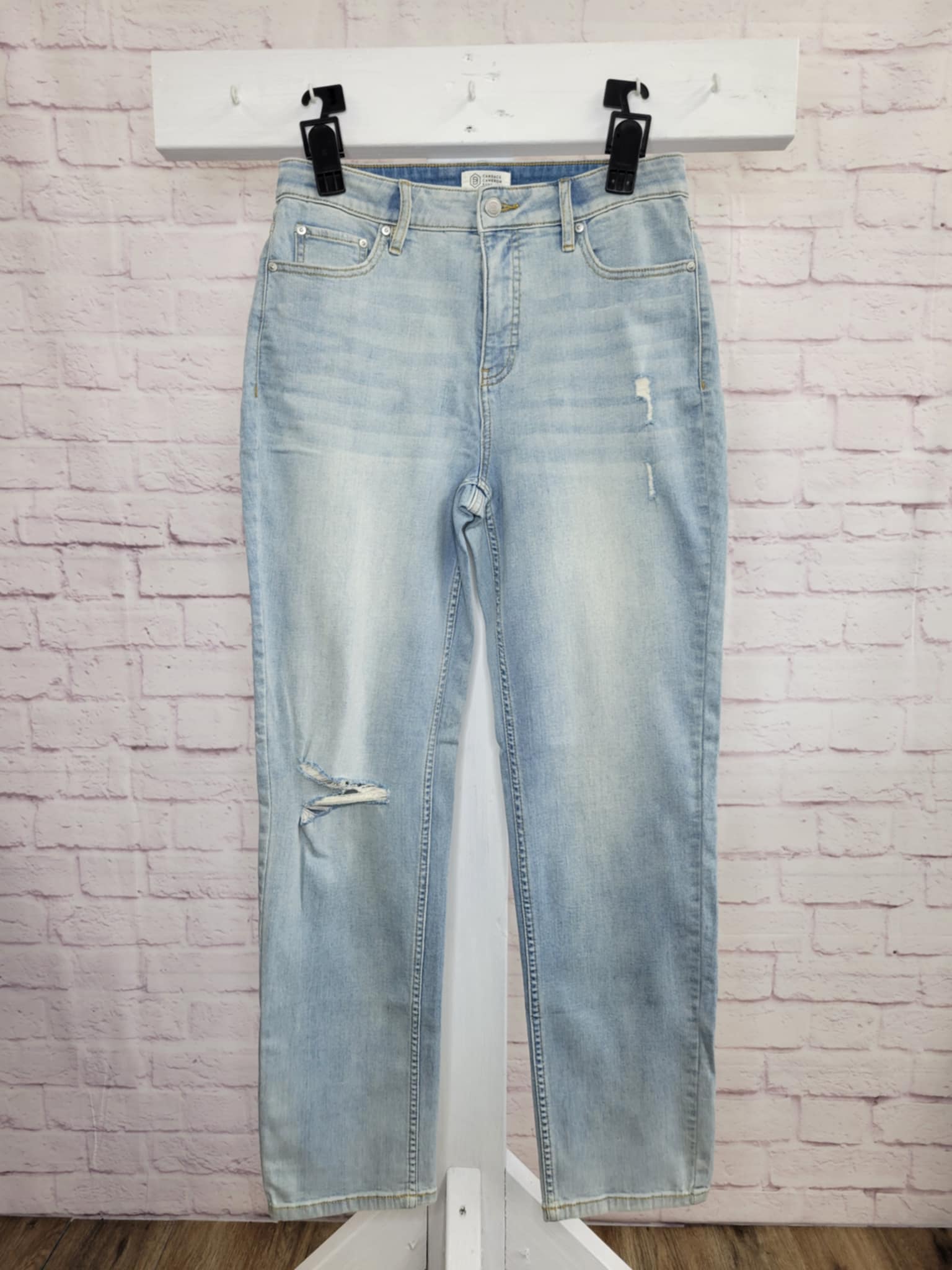 Distressed details add a laid-back, cool-girl vibe to this straight-leg denim. Dress it up with heels and a button-front blouse or dress it down with sneakers and a graphic-print tee. From Candace Cameron Bure.