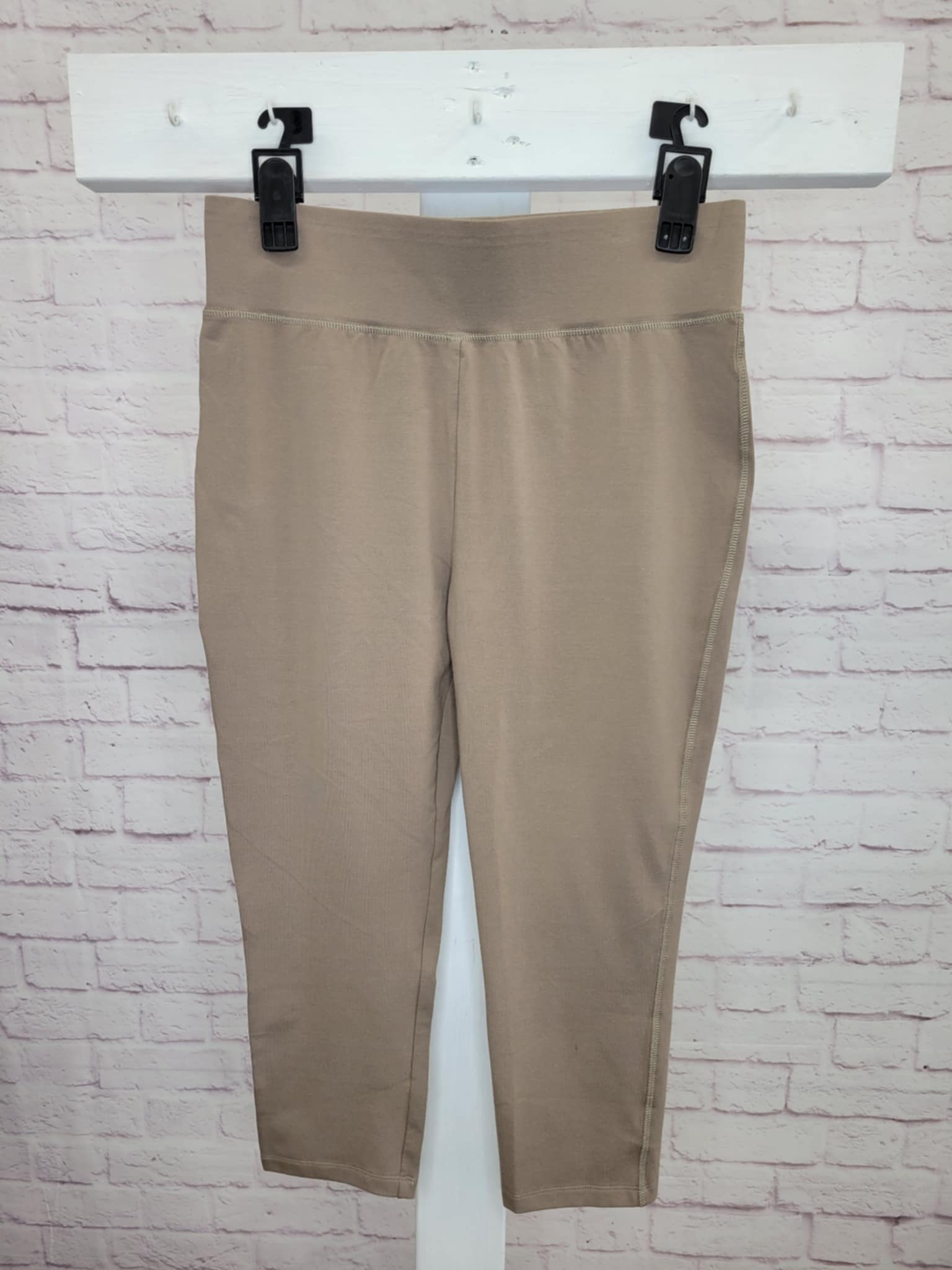 XXSMALL FOSSIL TAN A394800 LOGO Layers by Lori Goldstein Regular Cropped Leggings