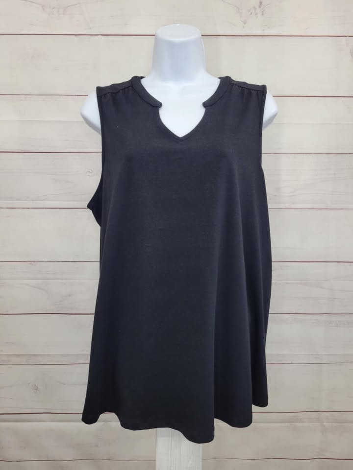 LARGE BLACK A648429 Denim & Co. Essentials Favorite Jersey Split Neck Swing Tank