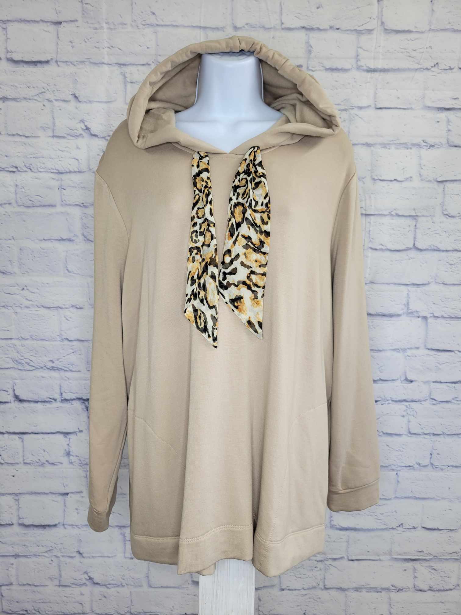 LARGE STONE A454555 Susan Graver Weekend Brushed Back Knit Sweatshirt with Printed Tie