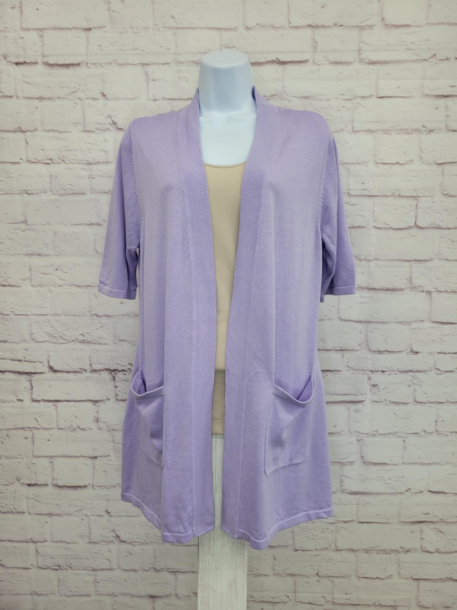 XXSMALL LILAC A499582 Isaac Mizrahi Live! Short Sleeve Open Front Sweater