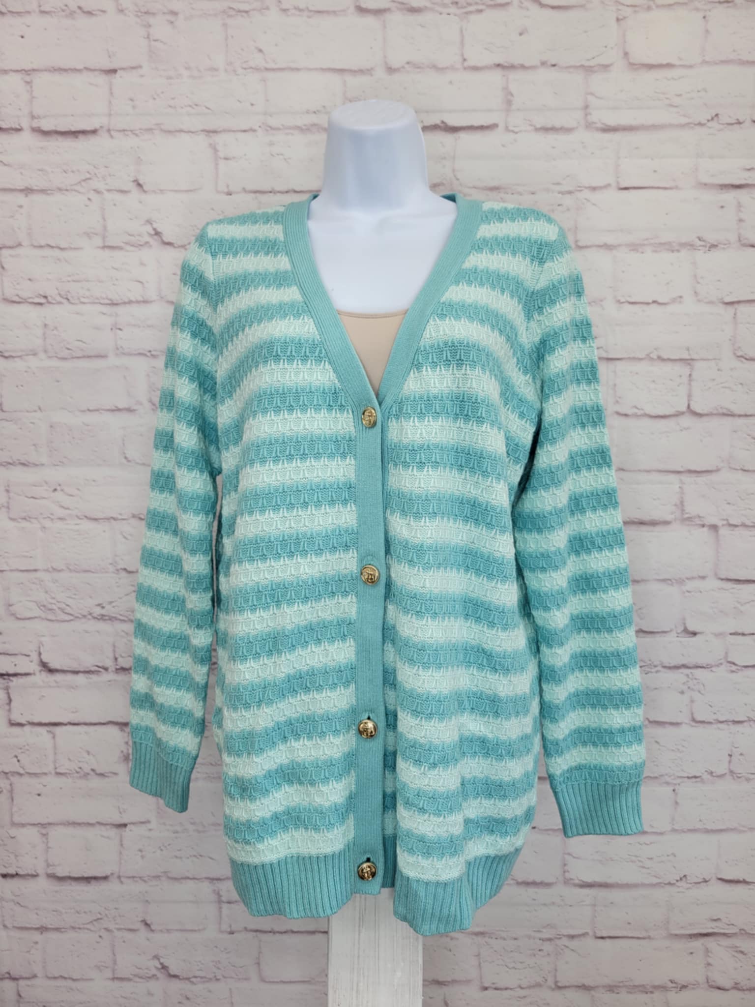 XXSMALL SEAFOAM A632088 Joan Rivers Honeycomb Stripe Button-Front Cardigan