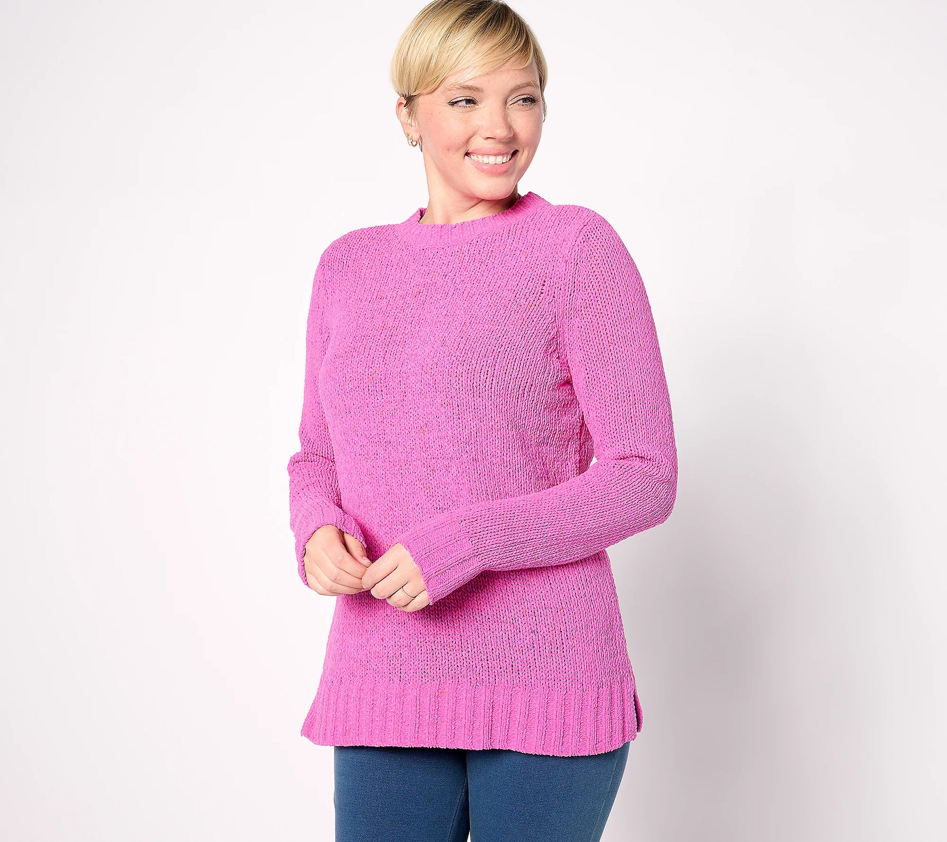 Cue the confetti! This chenille crewneck sweater has pops of bright color sprinkled throughout, for a cheerful look that's perfect for the holiday party. From Belle by Kim Gravel.