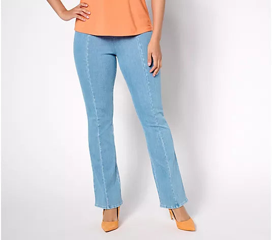 Classic, but refreshed. Top-to-bottom leg seams amp up versatile boot-cut pants in comfy Prime StretchTM denim. From Women with Control®.