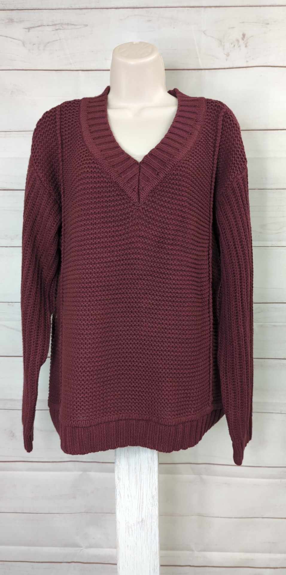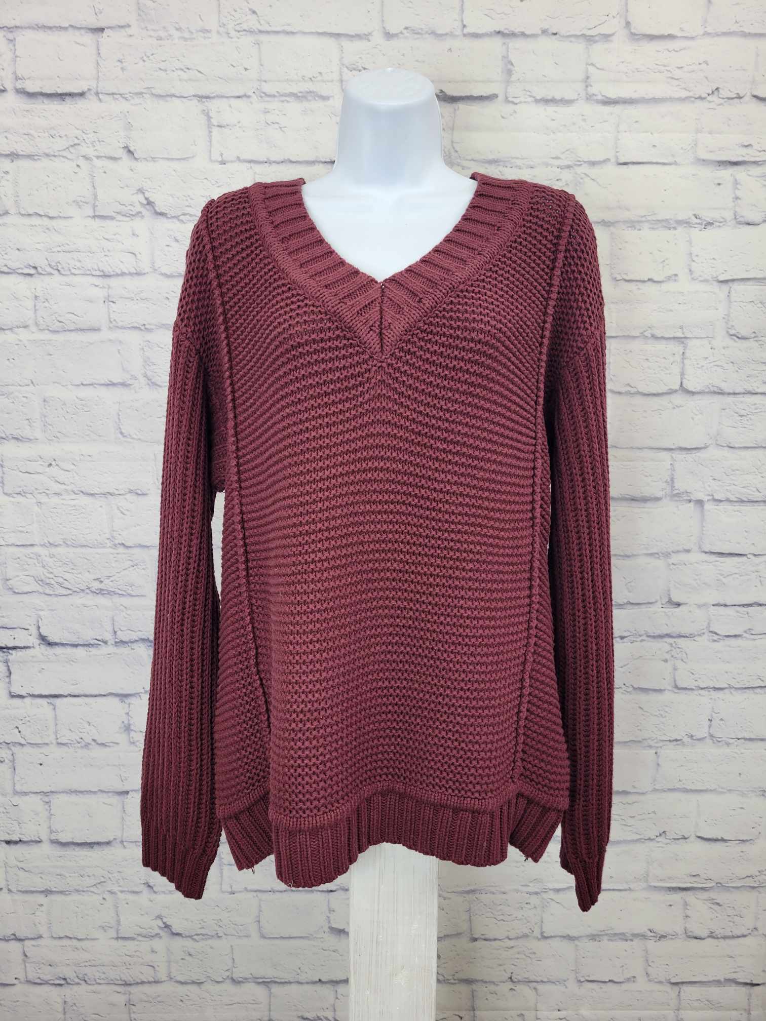SMALL WINE A518984 Encore by Idina Menzel Mixed Stitch V-Neck Sweater